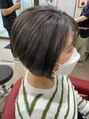 トーンダウンに遊びを入れて細かいハイライトで動きを出しています。伸びても根元が気にならないようにリタッチ部分は1トーン暗めに設定しています。