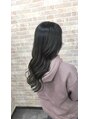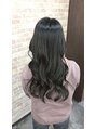 透け感のあるカーキ系のグレージュカラー。全体にレイヤーを入れて動きのあるスタイルに。