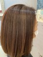 白髪ぼかしのハイライト、グレイライツハイライトになります。ハイライトの中で一番細かく入れるので筋は無くナチュラルに明るく白髪をぼかします。