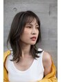 動きのあるくびれミディアムスタイル。毛先の束間と薄めの前髪がスタイル全体に軽さを出す大人のくびれボブ。