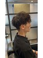 ボリューム感と動きが絶妙な波打ちスパイラルパーマに、清潔感を与える刈り上げをプラス。ナチュラルな立体感で、セットも簡単。ビジネスにもプライベートにもマッチする万能スタイル。
