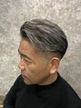 1ミリ以下のフェードでスッキリ清潔感を出しつつ、73分けにして白髪ぼかしのハイライトを入れてます!ブリーチは2回でシルバー系のカラー!オシャレな白髪スタイルでとてもカッコよく、自然なクリーム色に抜けてくるので色落ちしても綺麗です!