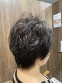抗酸化カラー&水素トリートメントで褪色した髪をオリーブ系のカラーで落ち着いた雰囲気に、残っているパーマをいかせました。