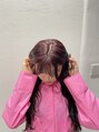 ミルクティーピンクぱっつん前髪レイヤーロングアースカラー都島
