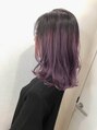 ミディアムレイヤーカットでやりすぎない自然なエアリーな質感を出しつつ、グラデーションラベンダグレーでどこか余裕のある女性らしい可愛らしさを表現。巻き髪風パーマでON.OFFどちらもいけて、カジュアルな中にもキチッと感のある抜け感ヘアを