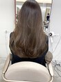 ロングヘアにワンカールのゆるっとレイヤースタイル。のっぺりしやすい方も程よいボリューム感と動きのあるヘアになれます♪ふんわりやわらかな質感にオレンジみを抑えたアッシュグレーカラー☆少しグラデーション風にカラーすることでより立体的で束感も◎