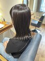 地毛に近い暗さでただの黒髪じゃない色みにこだわったカラーです。抜けてきた時にオレンジにならないネイビーカラーはこれからの季節にもオススメ。青とグレーがベースですが、くすませすぎないようバイオレットも入れて髪と肌がキレイに見える色みに。
