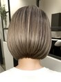 レイヤーカット/ボブ/くびれヘア/前髪長め/丸みショートボブ白髪ぼかしハイライト/ヘーゼルグレージュ