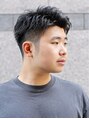 男らしくサイドをツーブロック、えりあしを刈り上げ、全体に動きがつくようにソフトツイストパーマ【気に入って頂いたスタイルは、ブックマークをしてご提示ください】