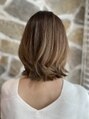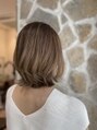ベースはワンレングス、表面のみ動きがでるようにレイヤーをいれました。カラーはブリーチでバレイヤージュ後、グラデーションでベージュをオンカラー。