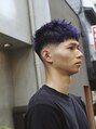 見てるだけで涼しくなる様なブルーラベンダーカラーのスパイキーショートです。ネイビー寄りの色味なのでフェード部分の地毛にも馴染みます。この季節に是非!