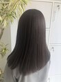 ダメージを最小限に抑えたイノアカラーを使用し、赤味を抑えたモノトーンカラーに仕上げています!柔らかく見えるので、ダメージが気になる方や、硬毛の方にもオススメです!カットは広がりにくくするため、重めにしています♪