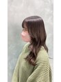 ラベージュカラーです! 色持ちも良く抜けても可愛いカラーになってます。サイドバングは流れるようにカットして全体の長さはミディアムヘアのワンレングスカットです!