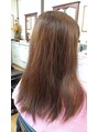 ベージュ系の明るめカラー。パサつきが気になる髪が2stepトリートメントで艶髪に。ドライヤーで軽くドライしただけでサラッとまとまれば、毎日のブローが簡単楽しくなります♪