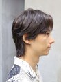 センターパートのミディアムショート。毛流れをつけるのにボディーパーマをかけるとアレンジしやすいですよ。メンズカット/メンズパーマ/ニュアンスパーマ/フェザーパーマ