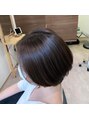 結ぶ事の多いミディアムに飽きたお客様でシュートにすることで垢抜けママに!ドライヤー1つでまとまる丸みショート!お手入れ簡単重視!!色もアッシュカラーで柔らかく。