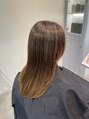 マロミベージュにシフォンベージュハイライトで、どこから見ても美しい大人の艶ロング。色落ちも楽しめるハイライトデザインです。