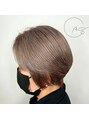 大人の魅力を引き出す、透明感あふれるグレージュカラーのショートスタイル。後頭部に丸みを持たせ、襟足はすっきりタイトに。横顔美人を叶える絶妙なカットで、毎日のセットも簡単。品格と洗練された印象を与えたい方におすすめのスタイルです。