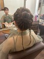 美容関係の結婚式の参加で、他の人と少し違う髪型、尚且つ上目の位置良いとの事で、細かく打ち合わせをさせていただき、「カチモリアレンジ」をいたしました。成人式にもおススメです。