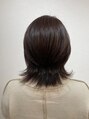 ミディアムスタイルのウルフレイヤースタイル外はね仕上げのアウトラインにふんわりとしたトップが特徴の落ち着いたヘアスタイルです。ベージュカラーとの相性も良く大人綺麗な雰囲気に仕上がっています。