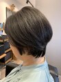 襟元を絞ることにより首周りがスッキリ見え、バックにボリュームを出すことで女性らしいラインを再現。前下がりにし、おろしているときは長く、耳にもかけられるためスタイリングも遊べるスタイル。