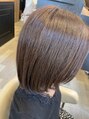 カットは丸みのあるボブスタイルで収まりが良くなるようにカット。前髪は長めに残しているので、最後に動きがでるように軽く外巻きをして大人韓国風にしあげています。カラーは色落ちしても綺麗なラベンダーグレージュです♪