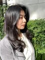 胸上のロングヘアは長めの前髪から繋がるレイヤーで華やかな女性らしい印象に◎毛先ワンカールの簡単スタイリングでお手入れも簡単です!