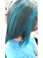 ハイブリーチをしてからカラーをします。寒色系は入りにくいので2回以上のブリーチをします。時間もかかりますが仕上がりはとても素敵になります!