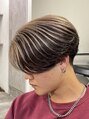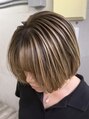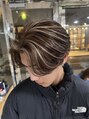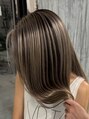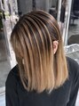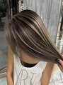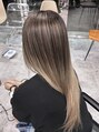 ハイライトとバレイヤージュでつくる外国人風カラー。デザインブリーチで赤みを抑え、自然な陰影と透明感を引き出します。ギャルっぽさのない、大人っぽい抜け感が得意です。