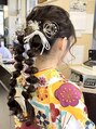 卒業式に参列されるお客様。二つに結んでツインテールにします、輪ゴムで止めて丸くポコポコした動きをつくります。水引き、かすみ草などをバランス良く配置して可愛い印象に!