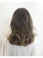 外国人風のハイライトブランジュカラー♪髪の毛全体に細かいハイライトを入れた3Dカラー☆コテで巻けばより立体感がでたオシャレなスタイルに♪ベースは根元は5レベル、中間毛先は9レベルの色味を使うことによって、ナチュラルなグラデーションに!