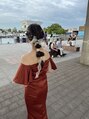 結婚式前撮りのお客様のヘアセットです!人気のたまねぎヘアにリボンを巻き付けて可愛く仕上げました♪金箔で少し派手さを演出して華やかな印象に☆