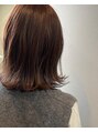 肩すれすれの長さでぱつっとライン感が残るようにカット。巻いた時に動きが出るようトップにのみレイヤーを入れ◎カラーはピンクベージュで黄みのあるベージュが入ることによりやわらかくあフェミニンな雰囲気に仕上がります◎