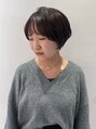 タイトな襟足ですっきりとした印象のカットに柔らかいニュアンスパーマで柔らかさをプラスした女性らしいショートカットカラーはブリーチなしでピンクブラウンカラーに♪
