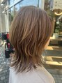 カットは、耳にかけられる長さを残しつつ、レイヤーを入れて外はねスタイルに。カラーは全体的に細かくハイライトをいれて立体感が出る様にカラーをしました^_^