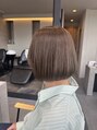 イルミナカラー新色アースをブレンドした肌馴染みの良いお色味です縮毛矯正をしているお客様の髪の毛も、ダメージを最小限に♪抑え、艶ツヤの仕上がりに明るい色にも赤味、黄味を抑えた絶妙なバランス色持ちも良く、色落ちしても髪色を長く楽しめます