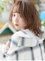 【スタイルは★ブックマーク★が便利】濡れ髪セミウェットウェーブでおフェロに仕上げたくせ毛風ふわミディ。耳かけアシンメトリーな髪型も大人かわいい。前下がりで小顔にしたり、斜めバングや厚めバングで目力UPしてもOK。(メイク担当:北浦和店 棟方)