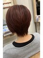 襟足長めの前下がりショートなのでクールな印象ですが、ピンク系カラー&たくさんのハイライトでふんわり柔らかく女性らしさをプラス!!