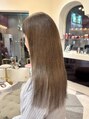 - 赤みを抑えたアッシュモカ。透明感とツヤを両立した上品ストレートスタイル。