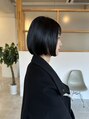 顎ラインまでバッサリとカット。赤みの少ない暗髪にするため、グレー系のカラーでトーンダウンしました。アイロンなしでオイルのみのお仕上げです。