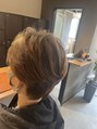 ウルフにしていく段階のショートレイヤー白髪ぼかしハイライトを入れて軽い仕上がりにしました!