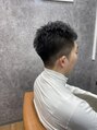 刈り上げと毛先の軽さがポイントの短髪スタイル。beforeを見てもらうとわかる様に膨らみやすい癖があるが季節的に癖が落ち着いているため癖を活かしたヘアスタイルです。