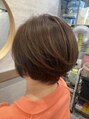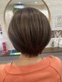 菱形くびれショートボブ。オレンジ味が出やすいお客様なのでブルーグレーで抑えて透明感を!メルココSPトリートメントで、カラーしながら保湿してしっとりなのにサラサラつやつやです♪
