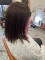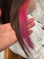 両サイドインナーカラーでショッキングピンクに♪普段矯正をしているので、ダメージはかなり抑えめにしてあります。ブリーチ+追ブリーチ+カラーとトリートメントカットで2時間半!カラーチェンジも可能です♪