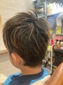 小学生のキッズカット!ホームカラーでママに染めてもらってるそうです♪サイドのみ刈り上げて、後ろはややツーブロックぎみな爽やかショートレイヤーに!軽めのソフトマッシュがカッコいいですね♪