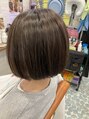 白髪染めとおしゃれ染めを塗り分けて徐々にハイライトっぽくなっています。カットはボブでスッキリと♪スライドカットで毛量は調整してあります。ブルーアッシュが透明感と艶感を出して、赤みを抑えてます!