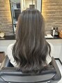 ロングヘアにグレー系ハイライトを入れたスタイルです。毛先まで程よく入るように入れ方を調整しているため、バランスよく見えてくれます。