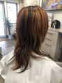 オレンジ色はブリーチ一回でハイライトダブルカラーできるので時短できます!しばった時の筋感が素敵です♪