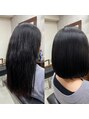 クセがあってロングだといつも結んでしまうのでボブにして縮毛矯正をすることに。できるだけコンパクトにできるだけナチュラルに。明日から結ばずにおろして出かけられると喜んでくれました。