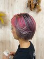 いつも特殊なデザインをされるお客様です。前回はアッシュやシルバー、レッド、ラベンダーを入れていたのですが、今回は赤だけを足してデザインを生かしました。